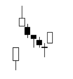 上図で見ると、1番左のローソク足と2番目のローソク足の間に空白部分があります。これが「窓」です。その窓を3番目以降のローソク足が埋めようとしています。これを「窓埋め」と言います。