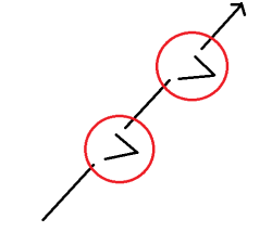 下降ペナント型とは、大陰線を付けた後、上値が切り下がるレジスタンスラインと下値が切り上がるサポートラインの中で価格が揉み合いながら時間の経過とともに徐々に収束していく型のことです。下降ペナント型では、価格が収束点に達すればサポートラインを下抜けて下落する可能性が高いとされています。この場合、価格がサポートラインを下抜けた所が売りのポイントとなります。下降ペナント型は価格が急落した時に出やすい型で、その後価格が上昇することはほとんどなく、下落が続きやすい型なので注意が必要です。